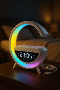 ✨ Todo al alcance de tu mano — sonido, luz, reloj y cargador en un solo dispositivo